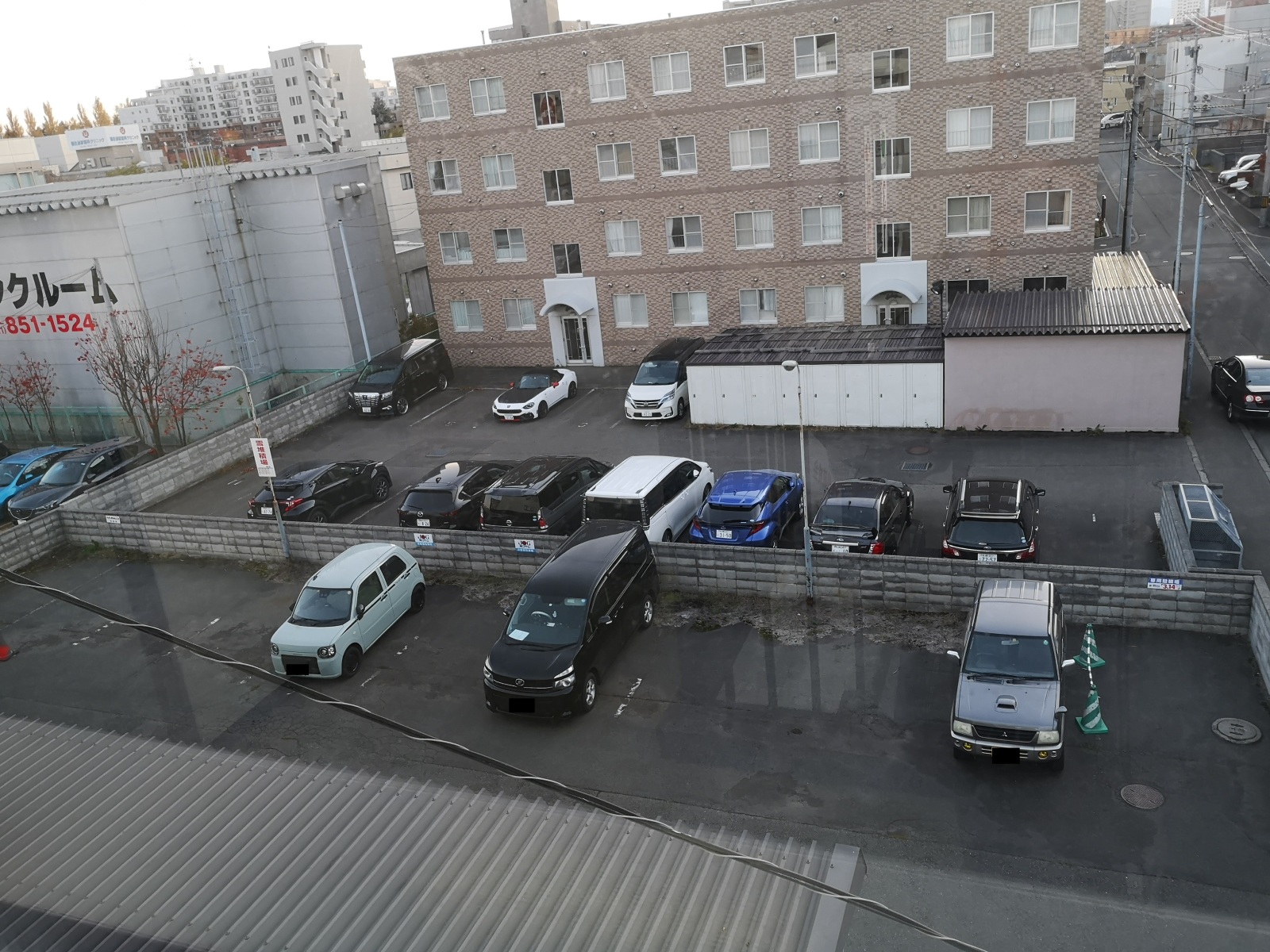 オフィスビルとマンションに囲まれて、車の背後は壁で守られています。周囲に何もない空き地の青空駐車場と違い、人目に付きやすいのでセキュリティーの面で優れています。屋根付の駐車場は、雪かきの必要がないため冬季の車の乗り降りがとても楽です。