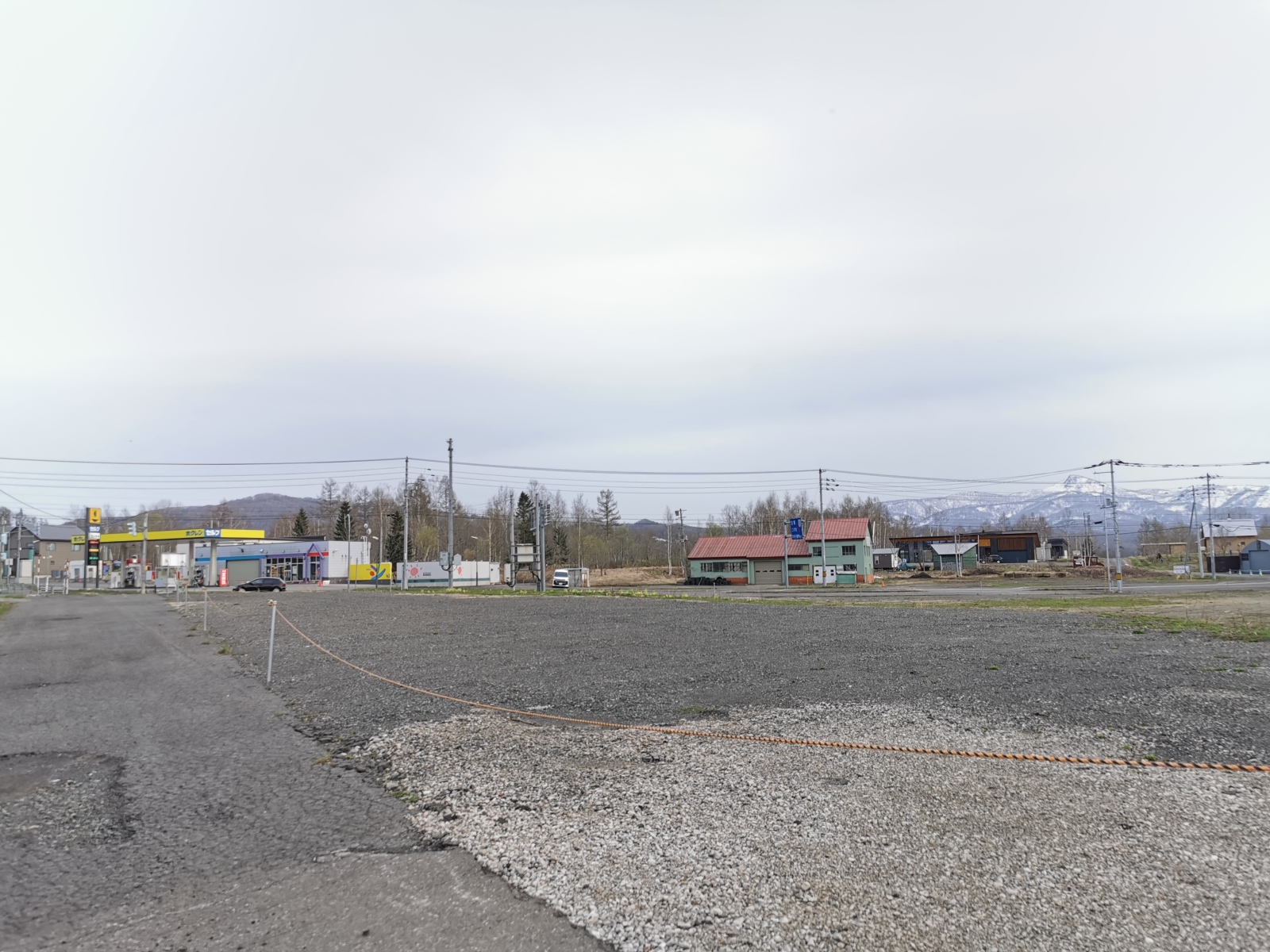 目の前には町で唯一のガソリンスタンド、ドラッグストア、