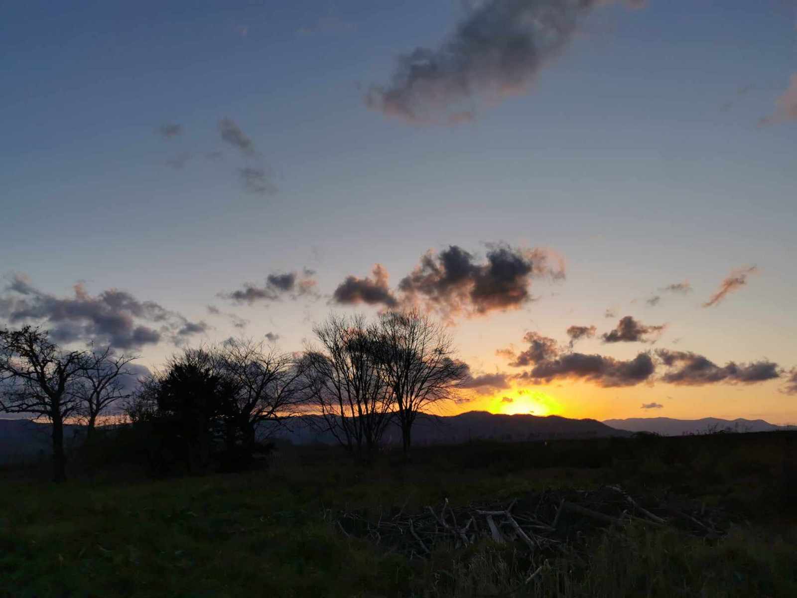 山の向こう側に沈んでいく、美しいサンセットの景色。