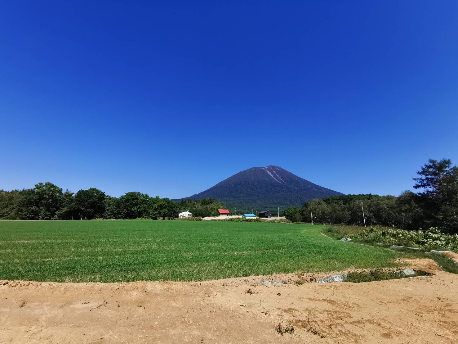 電線に遮られない羊蹄山の景色。