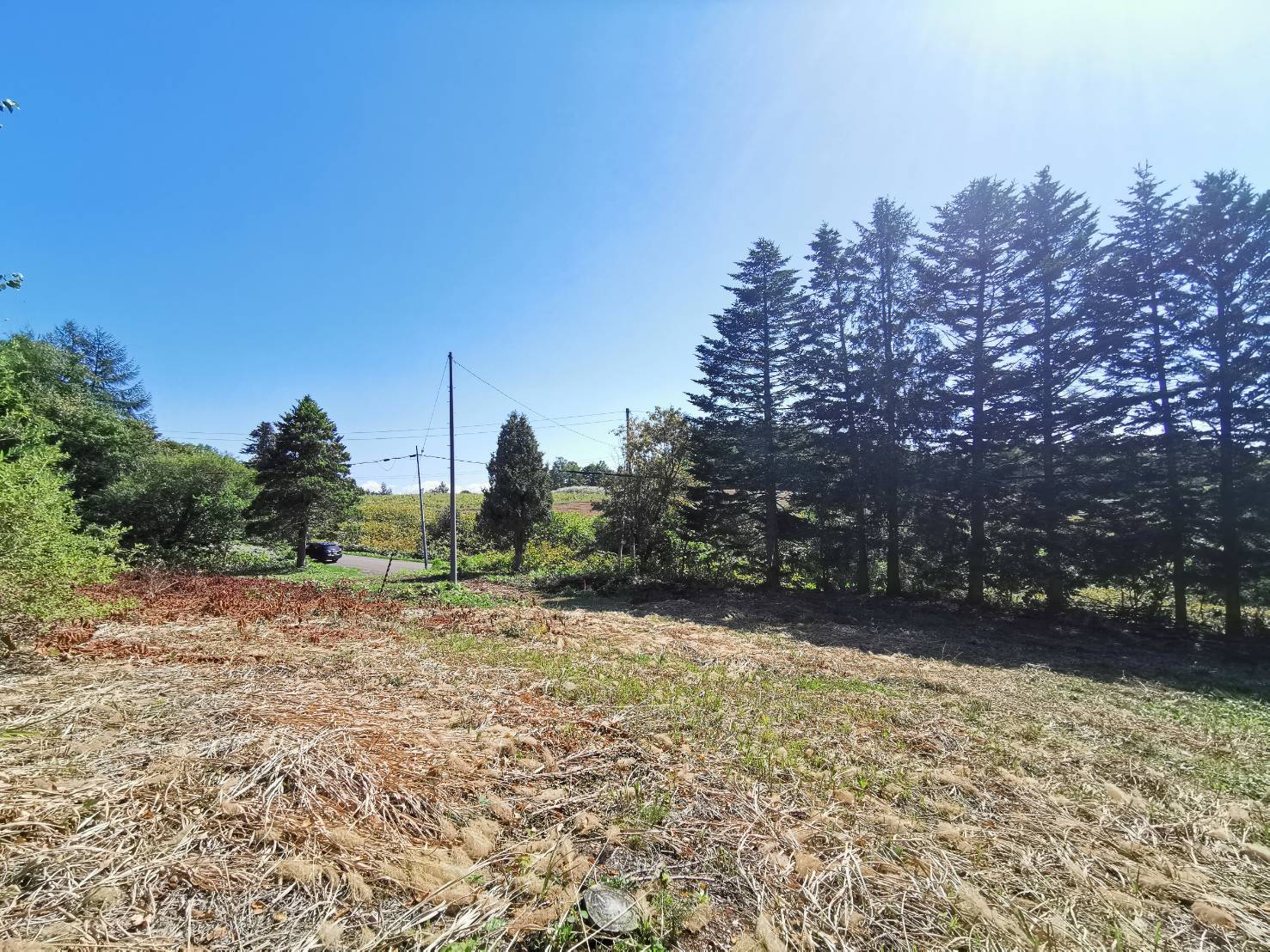 前後の広大な畑、左右の森。