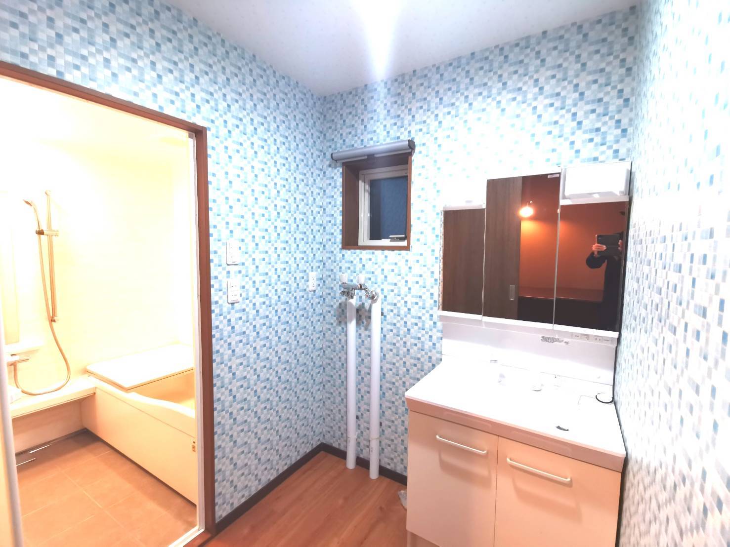Spacious dressing room. 広々とした脱衣所。
