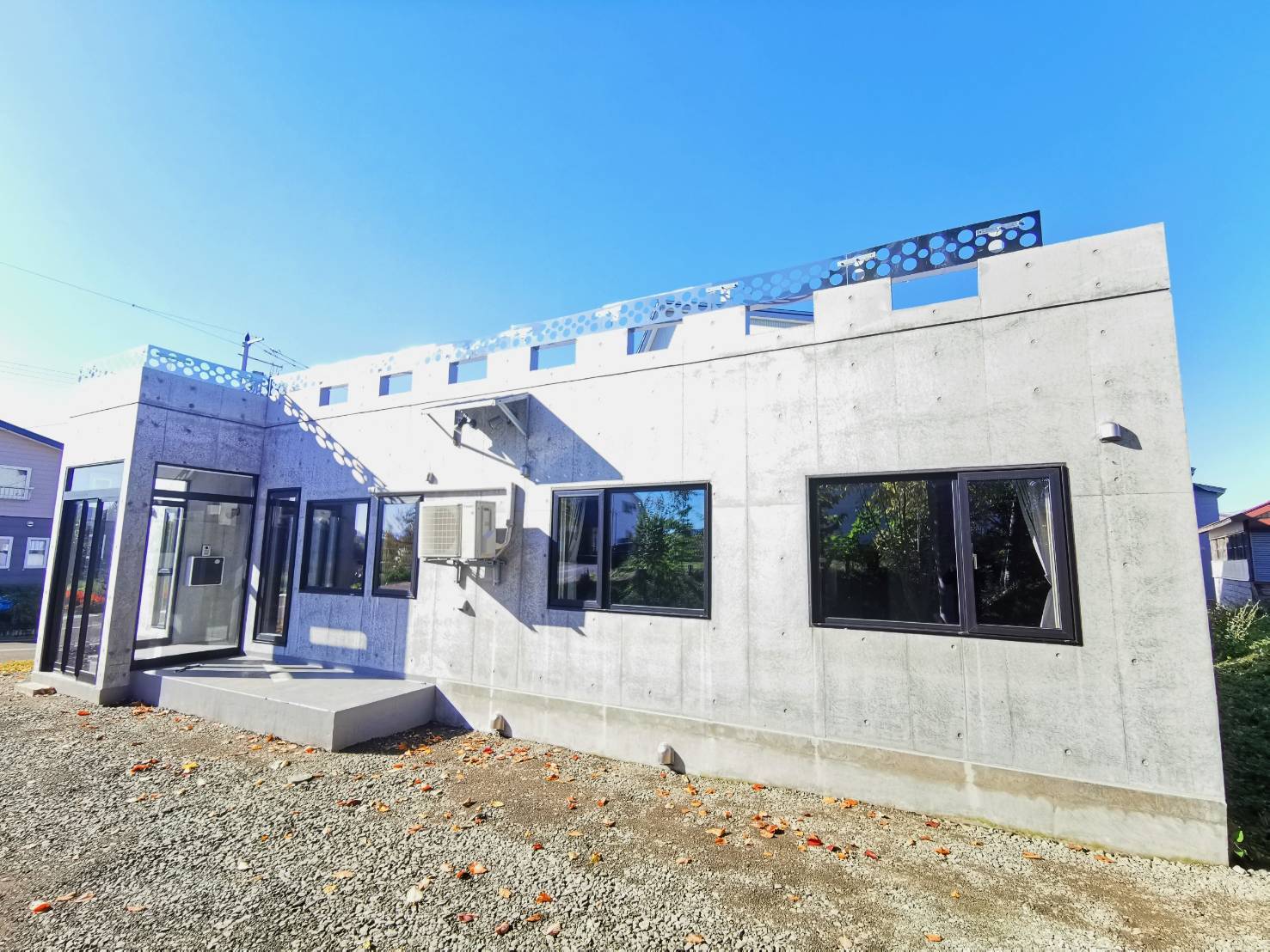 An eye-catching modern concrete structure. 目を引くモダンなコンクリート造り。