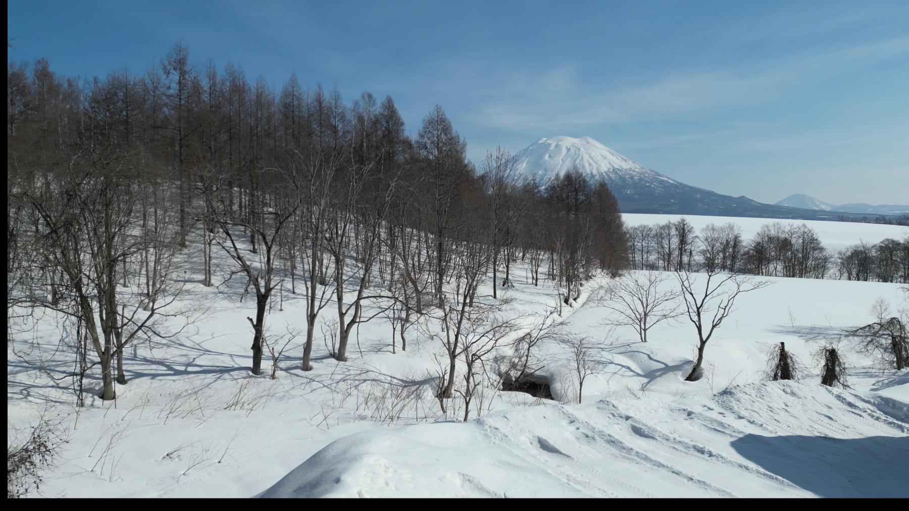 木々の間から見える雄大な羊蹄山とスキーリゾート