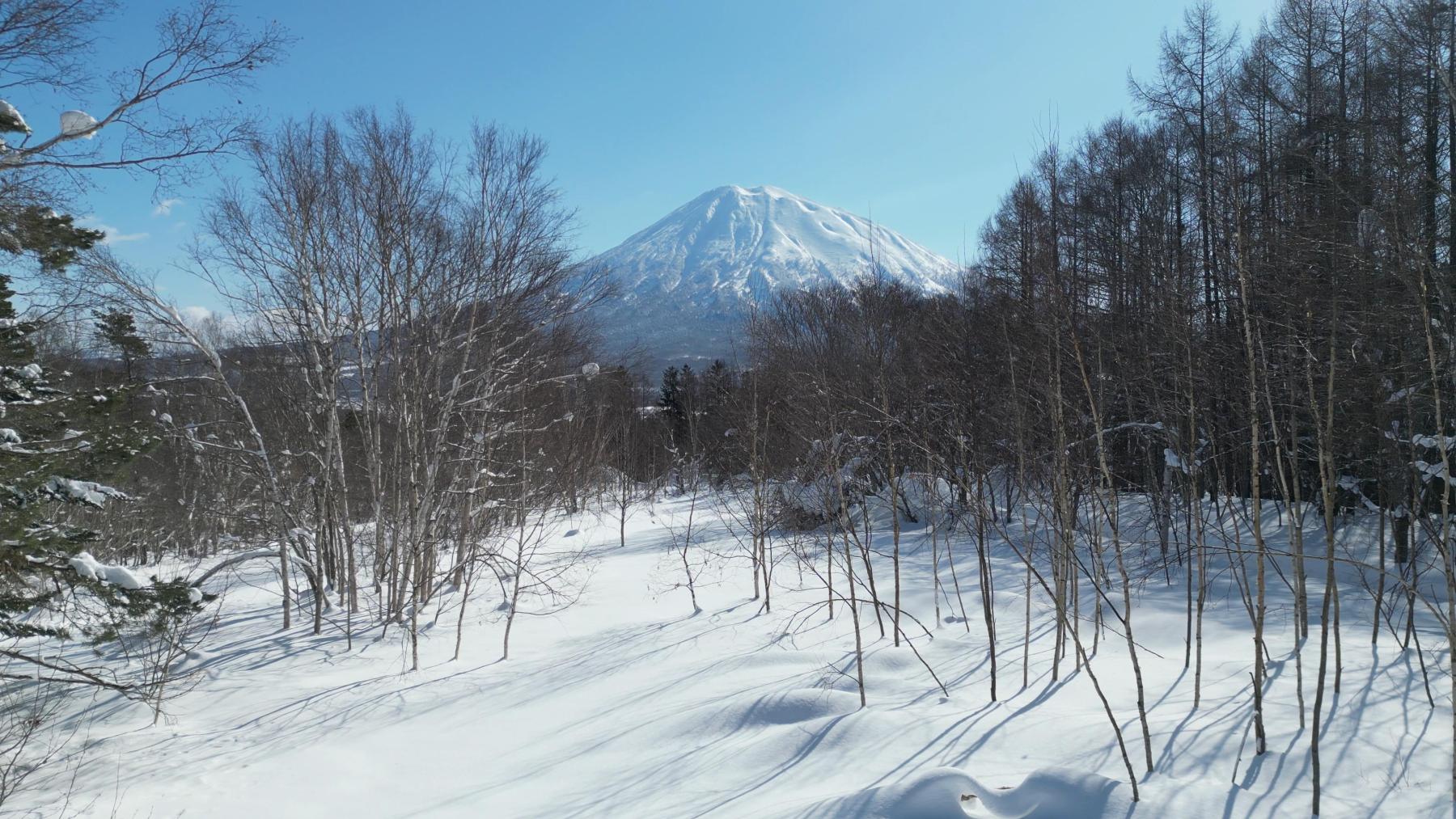 木々の間から見える幻想的な羊蹄山の景色が印象的です。