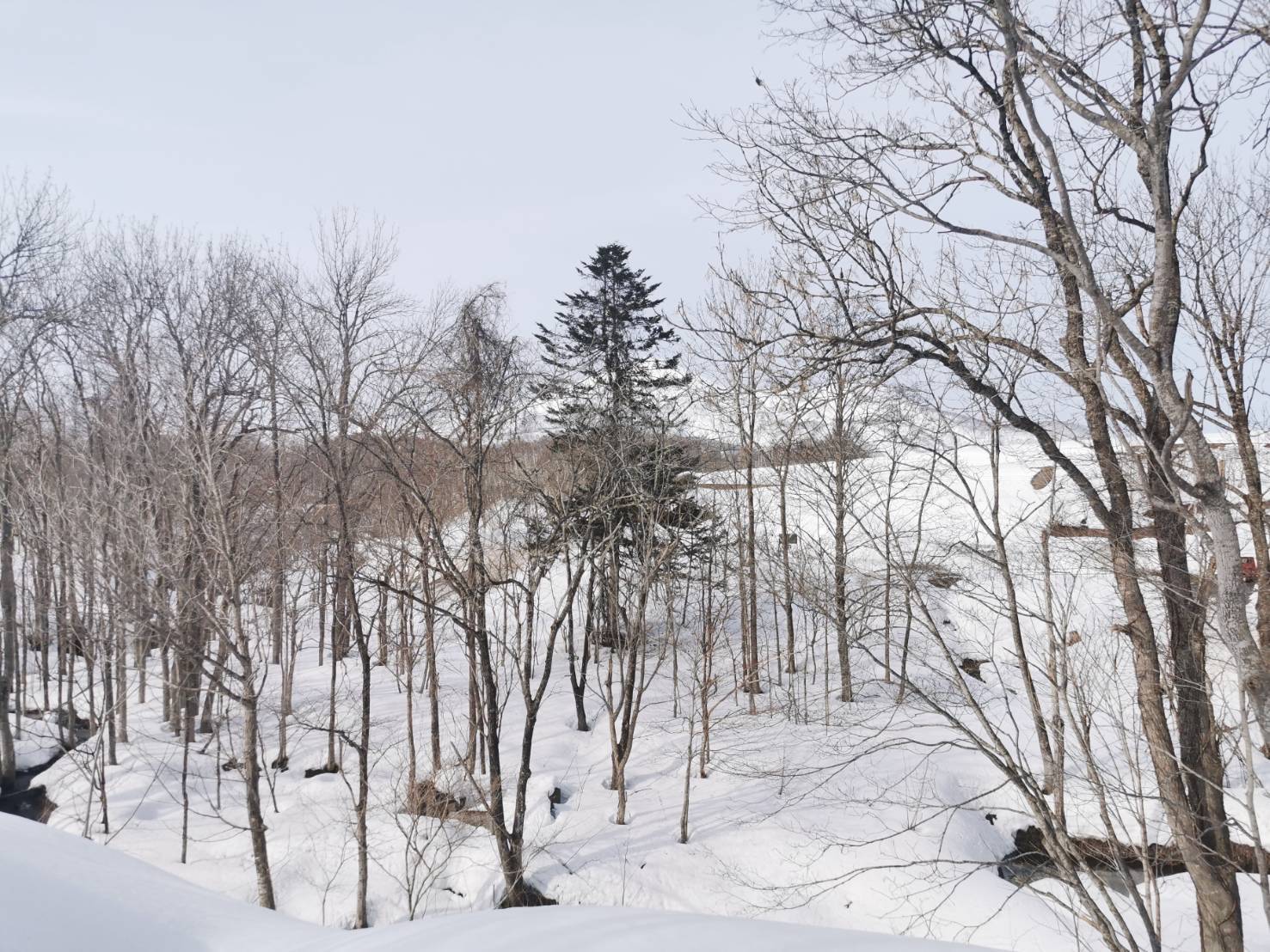 The ski resort can be seen through the trees, offering a panoramic view. At night, the lights from the night skiing create a romantic atmosphere木の間からはスキーリゾートが一望できます。夜はナイターの明かりがロマンティックです。