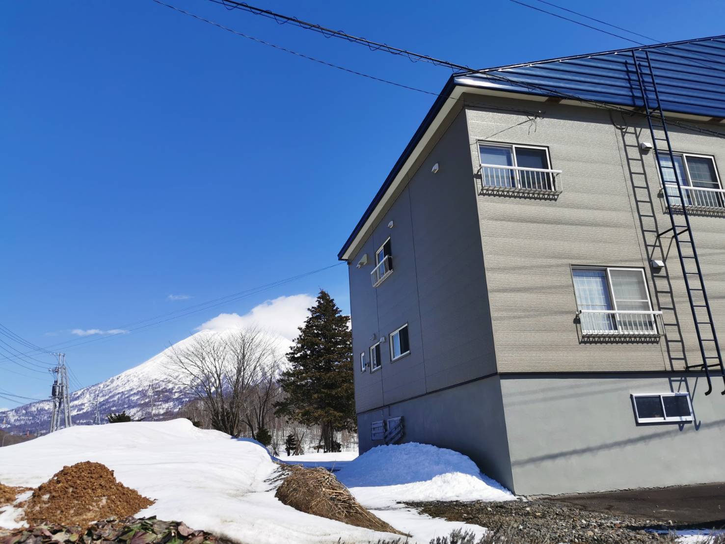 この物件は、電線に遮られることのない雄大な羊蹄山ビューが魅力です。周囲には広大な農地が広がり、将来的にもこの絶景が守られる環境にあります。三階建ての上層階からは、ヒラフ、ニセコビレッジ、アンヌプリ、モイワの各スキー場を一望でき、まさに360度の「理想のニセコライフ」を体感できるロケーションです。庭には桜と栗の木があり、春には桜と羊蹄山の共演を楽しめます。