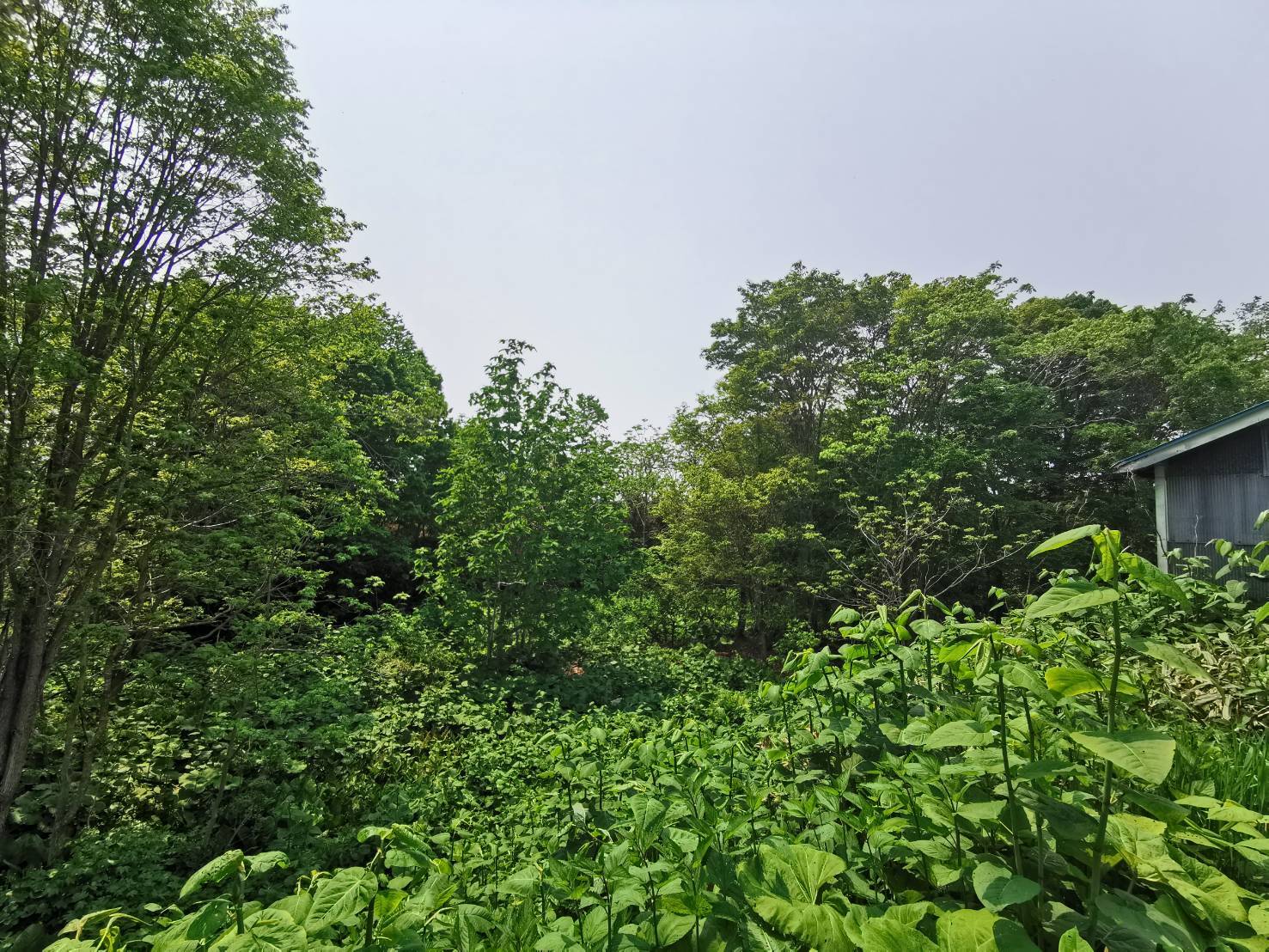 Behind the warehouse is a forest. By building a terrace that extends toward the stream, you can enjoy a delightful coffee time in nature. 倉庫裏は森になっています。沢側にせり出したテラスを作れば、素敵なコーヒータイムが過ごせます。