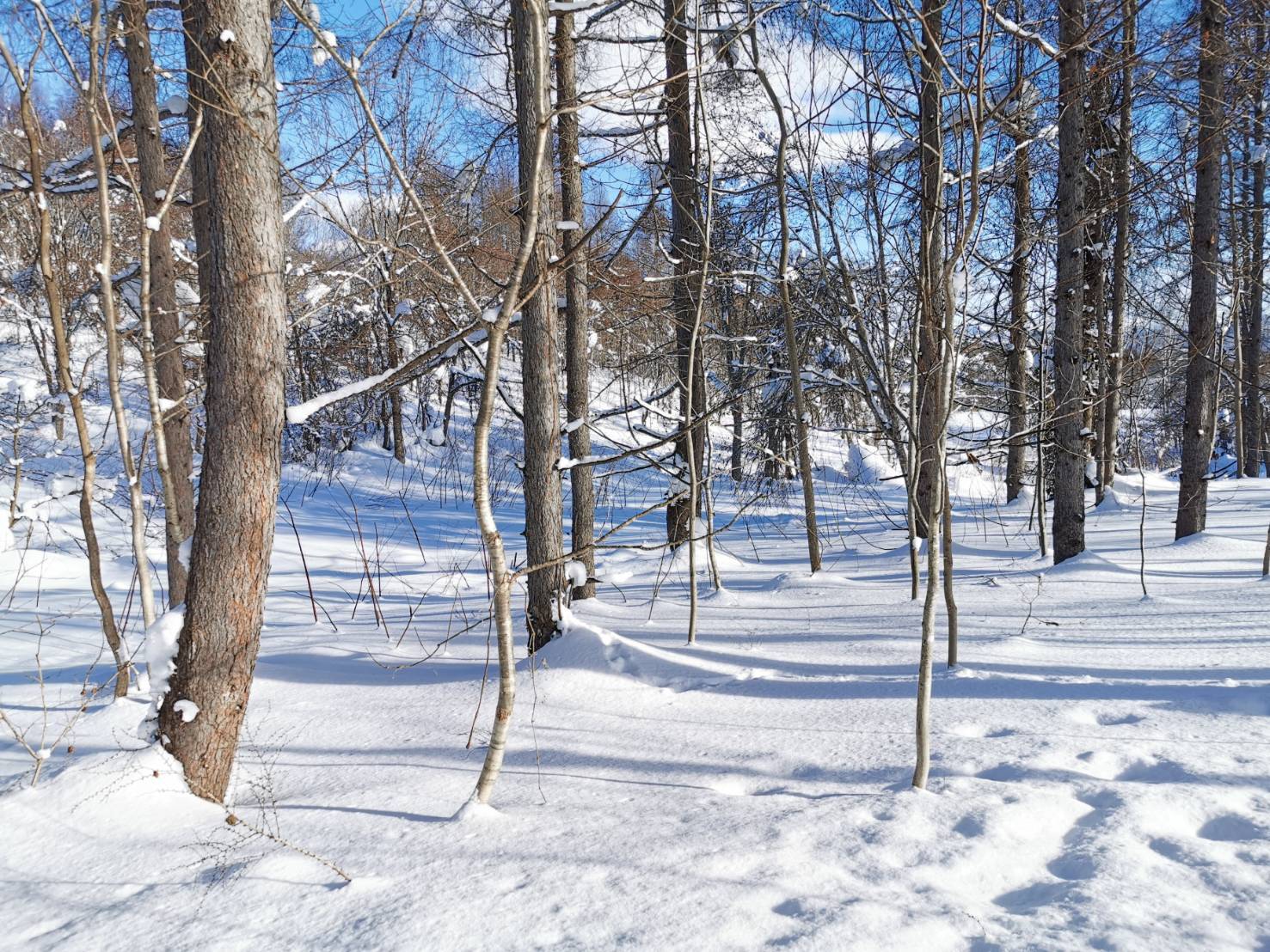 木々の間から見えるスキーリゾート。