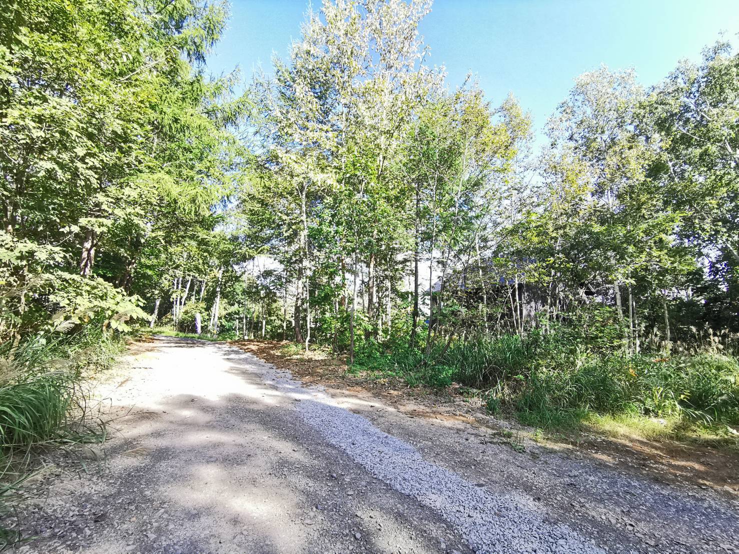View toward the opposite side leading to the town road. The front road has a width of 8 meters. 町道に抜ける反対側の景色。前面道路は8mの幅があります。