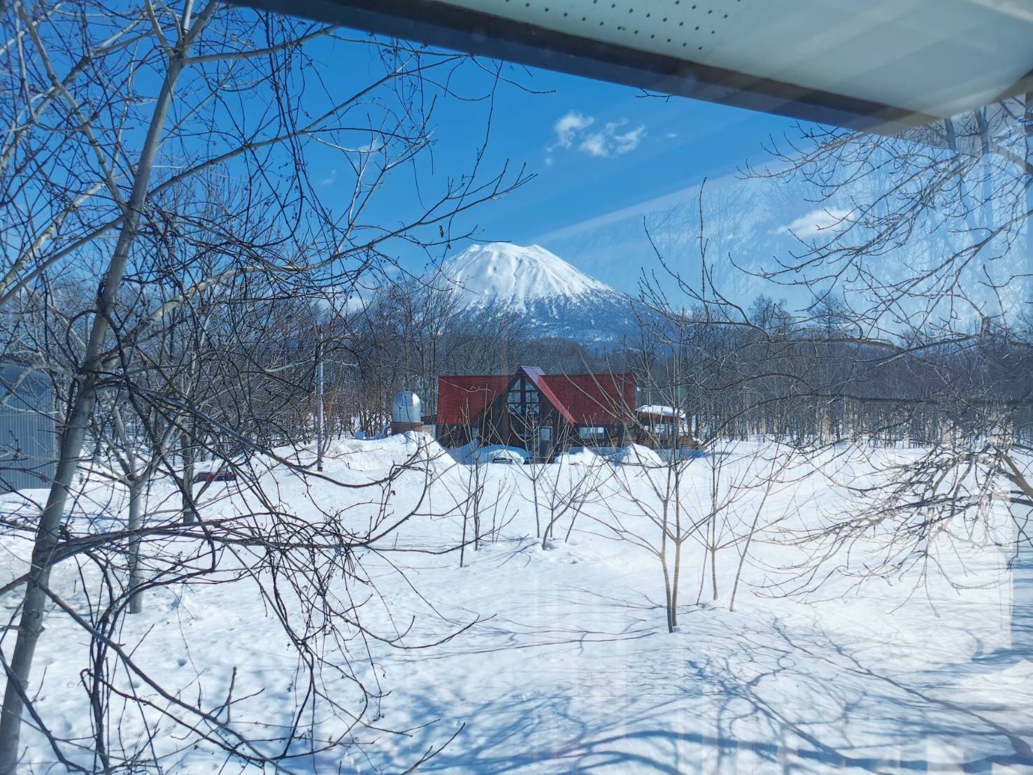 The view of Mount Yotei from inside the house. 家の中から見える羊蹄山の景色。