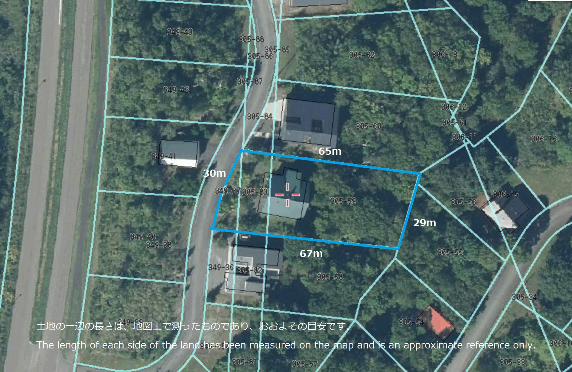 形の良い長方形の1917㎡の土地。住宅部分はフラットでその奥は傾斜しています。森や小川を楽しめる傾斜地と、フラットな部分を組み合わせれば印象に残るフォトジェニックなデザインになるでしょう。雄大な羊蹄山やスキー場など、素晴らしい眺めの建築が可能です。