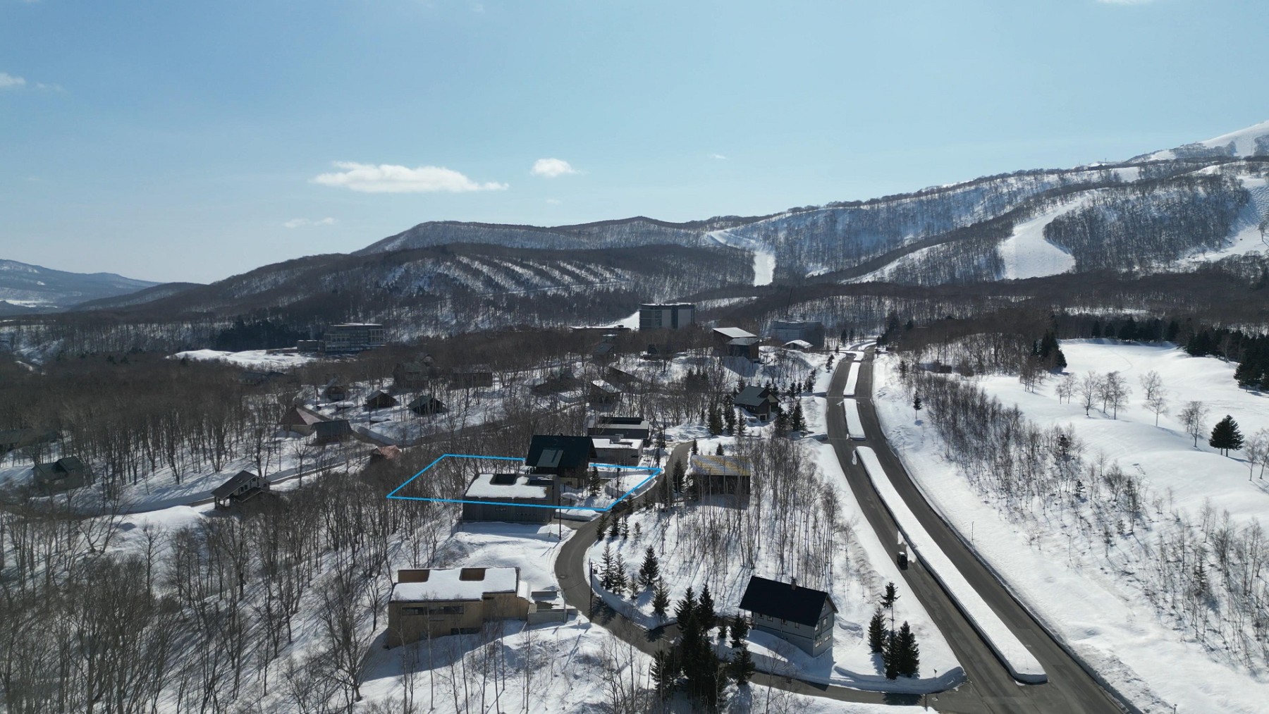 The land is a well-shaped rectangular site of 1,917 sqm. The residential area is flat, with a gentle slope extending behind it. By combining the flat area with the sloping terrain overlooking the forest and stream, a memorable and photogenic architectural design can be created. The property also allows for stunning views of Mt. Yotei and the surrounding ski resorts.