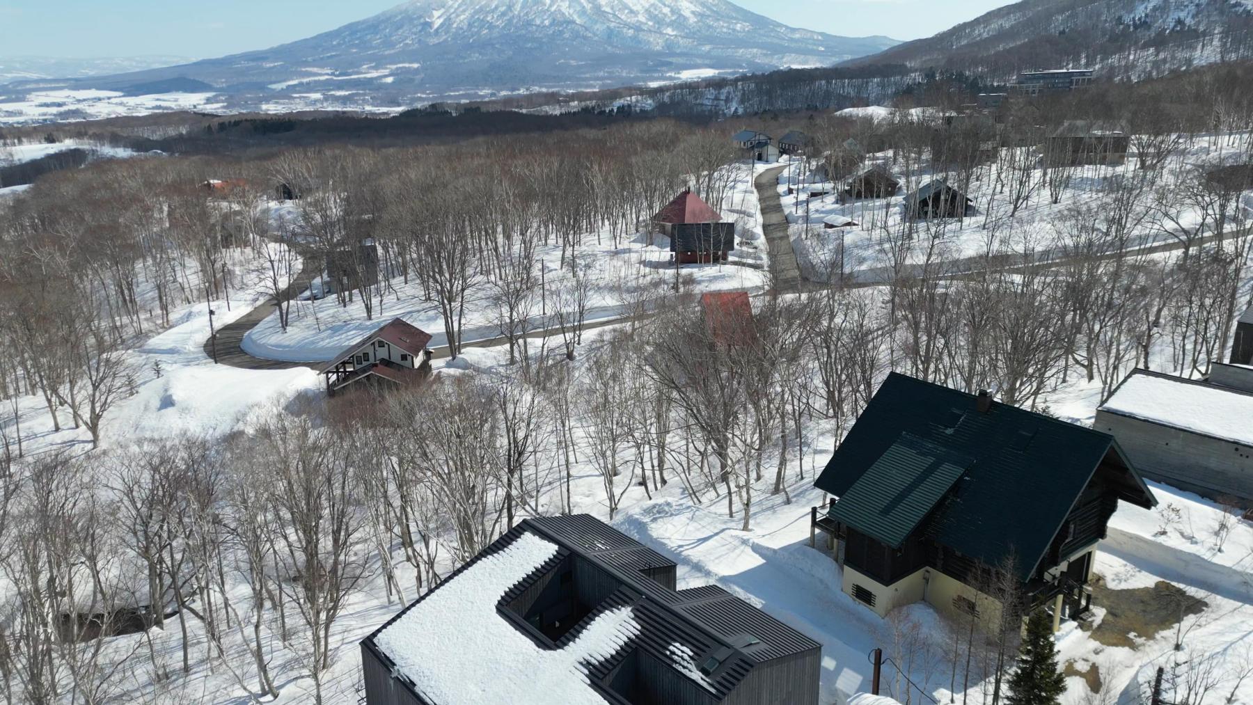 The land is a well-shaped rectangular site of 1,917 sqm. The residential area is flat, with a gentle slope extending behind it. By combining the flat area with the sloping terrain overlooking the forest and stream, a memorable and photogenic architectural design can be created. The property also allows for stunning views of Mt. Yotei and the surrounding ski resorts.